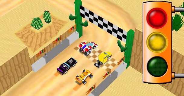 O altă paralele inevitabilă cu Racers 2 e prezența boss level-urilor de la finalul fiecărei zone cucerite din campionat. Ai o zonă de oraș în stil City, un deșert cu piramide și un Baron Flambo de înfrânt, o zonă de junglă ca de LEGO Adventures și o zonă arctică. La finalul campionatului te întreci cu mustăciosul campion Mr.X în stadionul său, individul care te ghidează încă din meniul jocului în orice tutorial.