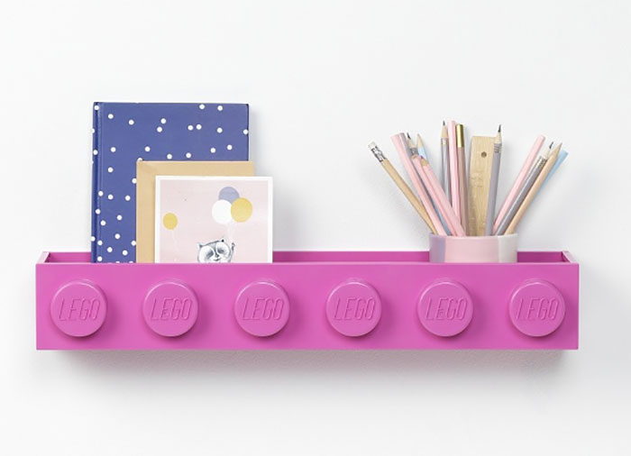Suportul LEGO roz pentru cărți aduce un nou stil decorativ și distracție în camera ta și poate fi montat pe perete sau expus pe masă și pe rafturi.